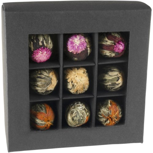 Kvitnúce čajové balenie sa dodáva v krásnej čiernej škatuľke a obsahuje deväť kvitnúcich čajov, čo vytvára výnimočne exkluzívnu zmes. Pre dosiahnutie najlepších výsledkov by sa mali variť v priehľadnej kanvici s objemom približne 600 ml.