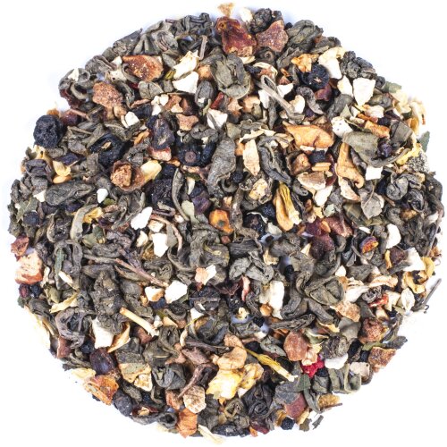 Zloženie: zelený čaj, hruška, jablko, pomarančová kôra, čierne ríbezle, ružová kôra, baza, jazmín, brezový list, mrazom sušená jahoda, aróma.